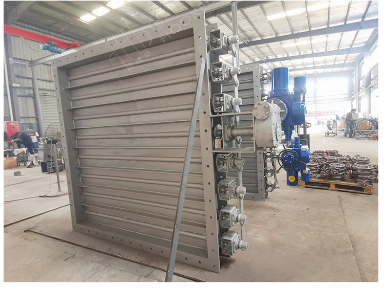 霍科德閥門生產的百葉閥由閥體、百葉板、閥軸、連桿機構、驅動裝置等主要部件組成。閥門主體為焊接結構,門板是由幾個繞各自旋轉軸動作的百葉板組成,軸端采用柔性石墨編織填料密封,具有耐高溫、自潤滑等特點。閥門工作原理是驅動裝置輸出力矩通過連桿機構傳給各閥軸,由各閥軸的轉動帶動各自的百葉板旋轉,從而改變管道內截面積,以達到大面積截斷介質、降低介質壓力或調節介質流量的作用,調節角度為0°-90°。該產品主要適用于冶金、礦山、水泥、化工、發電等行業的通風除塵及環境保護,特別適用于大口徑,大流量低壓差場合(如風機進出口處)。具有重量輕、流阻小、結構簡單、啟閉靈活、使用壽命長、操作維護方便等特點。